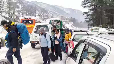 KULLU: A 10-hour traffic crawl for 15km. Sub-zero cold. Tourists ditch cars, walk on ice.Thousands of tourists remained stranded in Manali for a second straight day Sunday as icy roads and an unprecedented traffic surge brought the popular hill town in Himachal Pradesh’s Kullu district to a standstill.Exit routes out of Manali were the worst hit. Slippery stretches and tailgating vehicles produced jams stretching more than 10km, all the way to the 15 Mile point near Patlikuhal, a small market town lower down the valley where snow had begun melting.A viral video allegedly shot around 2.30 am Sunday showed tourists hauling trolley bags across ice, some slipping and falling. “This is the situation of people who rushed to Manali, ended up stranded,” wrote an X user, @rose_k01. For hundreds, the ordeal stretched through the night. Buses, taxis and cars barely moved as mercury plunged below freezing. Many, including children, spent Saturday night shivering inside vehicles. “It took us 12 hours just to reach Patlikuhal,” said Kulwinder Singh from Ferozepur, Punjab. “We spent the night shivering in the car. I have never seen such a nightmarish traffic jam.”