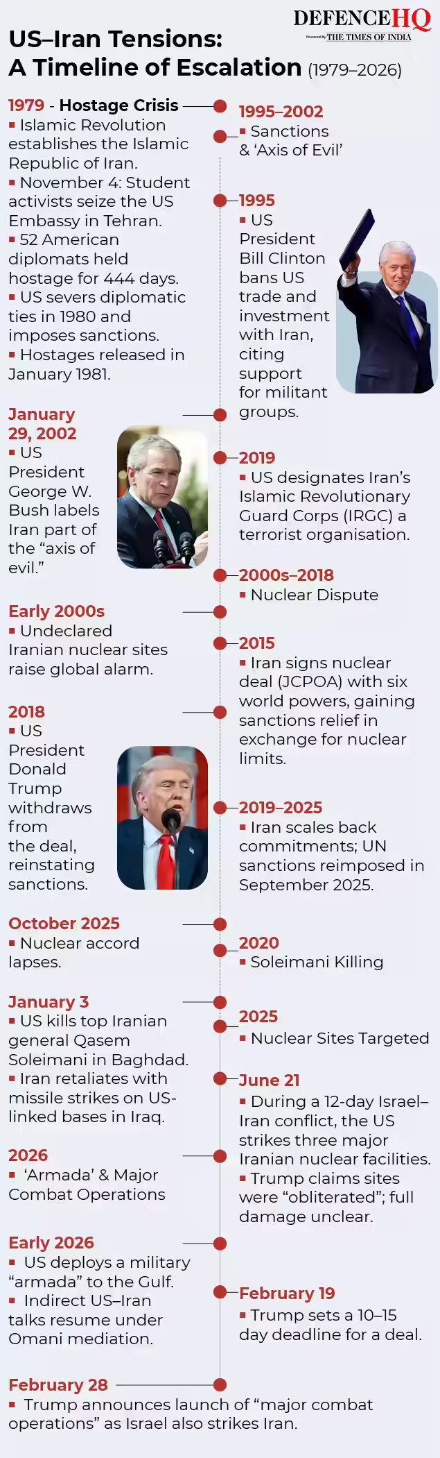 The strikes came days after renewed US-Iran talks over Tehran’s nuclear programme stalled. In recent months, Washington had built up a substantial military presence in the region, including deployments of the aircraft carriers USS Abraham Lincoln and USS Gerald R. Ford, alongside guided-missile destroyers and more than 10,000 additional troops.