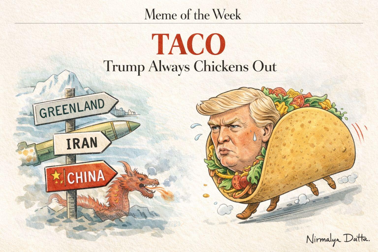 Trump Always Chickens Out (TACO) is a pejorative description mocking Donald Trump for making threats and then reneging on them. The phrase became popular in May 2024 during the trade war, particularly against China, and has also been used about his threats to annex Greenland, and the last-minute ceasefire deal for the Iran War.