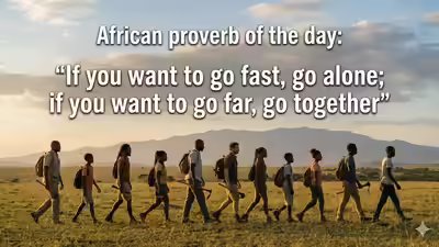African proverb of the day: “If you want to go fast, go alone; if you want to go far, go together” |