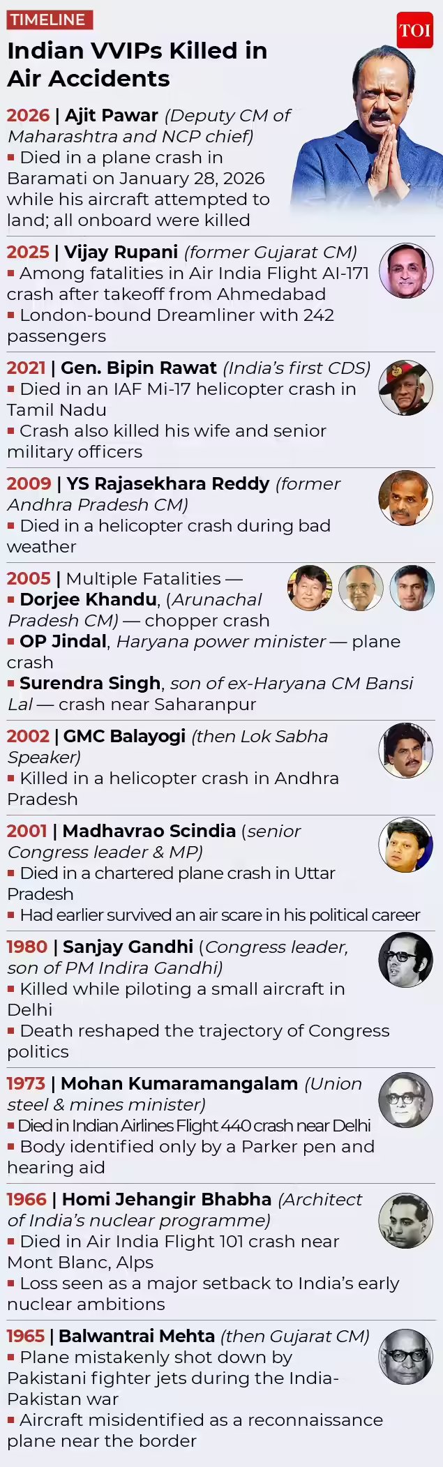Besides Ajit Pawar, the passengers included a personal security officer (Vidip Jadhav) and an attendant(Pinky Mali). The flight crew comprised Pilot-in-Command Sumit Kapur and Second-in-Command Shambhavi Pathak. Emergency services and senior security officials reached the site shortly after the crash, while local residents were among the first responders. Three bodies were shifted to Baramati Medical College, where identification procedures are underway, the Pune Superintendent of Police said. A DGCA team has also arrived at the site to assist in the preliminary assessment.The chartered aircraft belonged to VSR Ventures, the same operator whose plane had crashed at Mumbai airport on October 14, 2023. All passengers survived that incident, and a technical snag was cited as the cause. Preliminary information suggests a technical issue may have contributed to Wednesday’s crash as well.The flight was operating amid ongoing elections to Zilla Parishads and Panchayat Samitis in Maharashtra. Pawar was travelling from Mumbai to Baramati to attend a public meeting, reflecting the heavy air travel schedules maintained by political leaders during election campaigns.The Baramati crash adds to a growing list of aviation incidents involving VVIP travel that have come under scrutiny in recent years. In October 2024, a helicopter scheduled to pick up NCP leader Sunil Tatkare crashed in Pune, while western Maharashtra has witnessed multiple emergency landings linked to sudden weather changes.The incident is expected to intensify scrutiny of charter operators, pilot duty hours and safety oversight in the non-scheduled aviation sector, which plays a critical role in political and administrative travel across the country.AAIB is India’s designated authority for investigating aviation safety occurrences within Indian airspace. Its mandate includes classifying events as accidents, serious incidents or incidents, and conducting detailed technical investigations into causes ranging from pilot error and mechanical failure to weather conditions and operational lapses.Unlike routine inquiries, AAIB investigations involve flight data analysis, examination of aircraft maintenance records, pilot logs, air traffic control communications and meteorological data. The bureau’s findings often result in safety recommendations aimed at regulators, operators and manufacturers to prevent future accidents.
