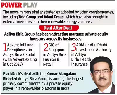 Tuesday’s announcement confirms that discussions between Aditya Birla Group and GIP have progressed into a formal agreement, marking a significant step in the group’s renewable energy business.Last year, NYSE-listed BlackRock acquired Global Infrastructure Partners, creating an infrastructure platform managing assets worth over $180 billion. Aditya Birla Renewables currently has a portfolio of 4.3 GW across 10 states, spanning solar, wind, hybrid, and floating solar projects, positioning it as one of India’s prominent renewable energy players.Aditya Birla Group has been attracting marquee private equity investors across its businesses. These include Advent International and PremjiInvest in Aditya Birla Capital (with Advent exiting in Oct 2025), GIC of Singapore in Aditya Birla Fashion & Retail, and Abu Dhabi Investment Authority (ADIA) in Aditya Birla Health Insurance. These investments reflect the group’s strategy of leveraging private capital to fuel growth while maintaining operational and strategic control over its businesses.Commenting on the deal, among the largest primary commitments by a private equity player in a renewables platform in India, Aditya Birla Group chairman Kumar Mangalam Birla said: “GIP’s investment marks a pivotal moment in our growth journey, laying a strong foundation for an accelerated buildout of our renewables platform, as we target a capacity of 10GW+ in the coming years. Their global leadership in owning and operating some of the most sophisticated energy assets worldwide brings both rigour and reach to our ambition. We see our renewables business emerging as a powerful growth engine.”