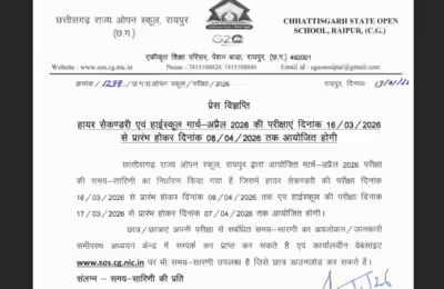 CGSOS Class 10th, 12th exam schedule: The Chhattisgarh State Open School (CGSOS) has officially announced the examination schedule for classes 10 and 12 for 2026. Students gearing up for the upcoming tests can now access the complete timetable on the official website, sos.cg.nic.in, available in PDF format.For class 10 students, exams are slated to run from March 17 to April 7, 2026, while class 12 candidates will sit for tests between March 16 and April 8, 2026. All examinations are scheduled from 8:30 AM to 11:45 AM. Candidates are reminded to carry their CGSOS hall tickets 2026 along with a valid ID proof; entry without these documents will not be permitted. Students are expected to report to their respective exam halls by 8:30 AM sharp, with question papers distributed at 8:40 AM.For class 10 students, exams are slated to run from March 17 to April 7, 2026, while class 12 candidates will sit for tests between March 16 and April 8, 2026. All examinations are scheduled from 8:30 AM to 11:45 AM. Candidates are reminded to carry their CGSOS hall tickets 2026 along with a valid ID proof; entry without these documents will not be permitted. Students are expected to report to their respective exam halls by 8:30 AM sharp, with question papers distributed at 8:40 AM.Class 10 Exam Schedule 2026Candidates can check the exam dates and subjects as provided here: