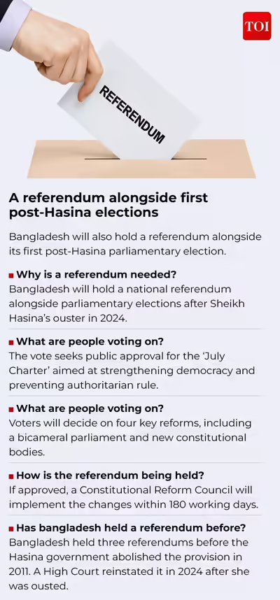 The 13th general elections in Bangladesh were different in several ways. They were held after a deadly uprising in 2024 that dismantled the old political order, and did not feature the country’s electoral giants — Sheikh Hasina or Khaleda Zia.The polls were also unique because voters were asked to cast ballots twice — once to choose their next Prime Minister and again to give their consent to the “July Charter”, which seeks to overhaul the nation’s governance structure.The referendum was conducted across all 64 districts under tight security and international observation. Early counts on Friday suggested a commanding lead for the “Yes” vote, with most constituencies reporting strong backing from both urban and rural regions, as most major parties — even those with minor disagreements over details — campaigned in favour of the Charter.According to the latest trends, the July Charter has garnered over 65.3% of the vote. If confirmed, the new Parliament will function as a Constitutional Reform Council and will be required to complete the reforms within 180 working days.This is the first time Bangladesh has held a referendum since 1991, and the first time it has allowed widespread mail-in and overseas voting. The Charter effectively ends the “winner-takes-all” system by granting the opposition greater institutional power. For instance, the Deputy Speaker must be from the opposition.