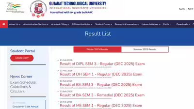 GTU Result 2026: December results declared for DIPL, DH, BA, ME, and MAM semesters at gtu.ac.in; check here
