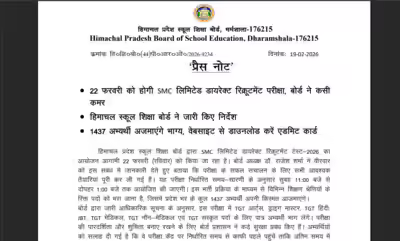 HPBOSE admit card 2026: The Himachal Pradesh Board of School Education (HPBOSE) has scheduled the SMC Limited Direct Recruitment Test-2026 for February 22 (Sunday). The test will be conducted between 11:00 am and 1:00 pm on Sunday at the designated centers.A total of 1,437 candidates are scheduled to appear for the test, which is being conducted to fill teaching posts under various categories. The test will be conducted for various posts such as TGT Arts, Drawing Master, TGT Hindi, JBT, TGT Medical, TGT Non-Medical, and TGT Sanskrit.The authorities of the board have said that all the necessary arrangements have been made to conduct the test in a smooth and transparent manner.Board authorities have stated that all arrangements have been completed to ensure smooth and transparent conduct of the examination.