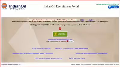 Candidates can follow the steps below to complete the online application process.Step 1: Visit the official website iocrefrecruit.in using a compatible web browser.Step 2: Register by entering basic personal details and generating a login ID and password.Step 3: Log in to the portal and complete the application form with educational and personal information.Step 4: Upload scanned copies of required documents in the prescribed format and size.Step 5: Submit the application and download the confirmation page for future reference.Important recruitment notesThe apprenticeship engagement is purely for training purposes under the Apprentices Act. Final posting will depend on refinery requirements, and selected candidates must produce original documents at the time of verification as scheduled. Medical fitness will be assessed according to IOCL standards before final engagement. Communication regarding results will be published on the official portal after completion of all stages successfully.Applications are accepted only through the official websites iocl.com and iocrefrecruit.in. Candidates are advised to ensure accuracy in submitted details, as discrepancies may lead to disqualification during document verification.