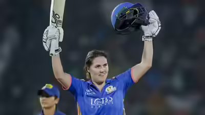 VADODARA: Nat Sciver-Brunt (100 not out) hit the first-ever century of Women’s Premier League history in its fourth edition as dominant Mumbai Indians beat Royal Challengers Bengaluru by 15 runs, despite Richa Ghosh’s whirlwind 90, here on Monday.In a must-win game to remain in contention for play-offs, defending champions Mumbai hit their strides to produce a near-perfect performance with the bat, piling up 199 for four.