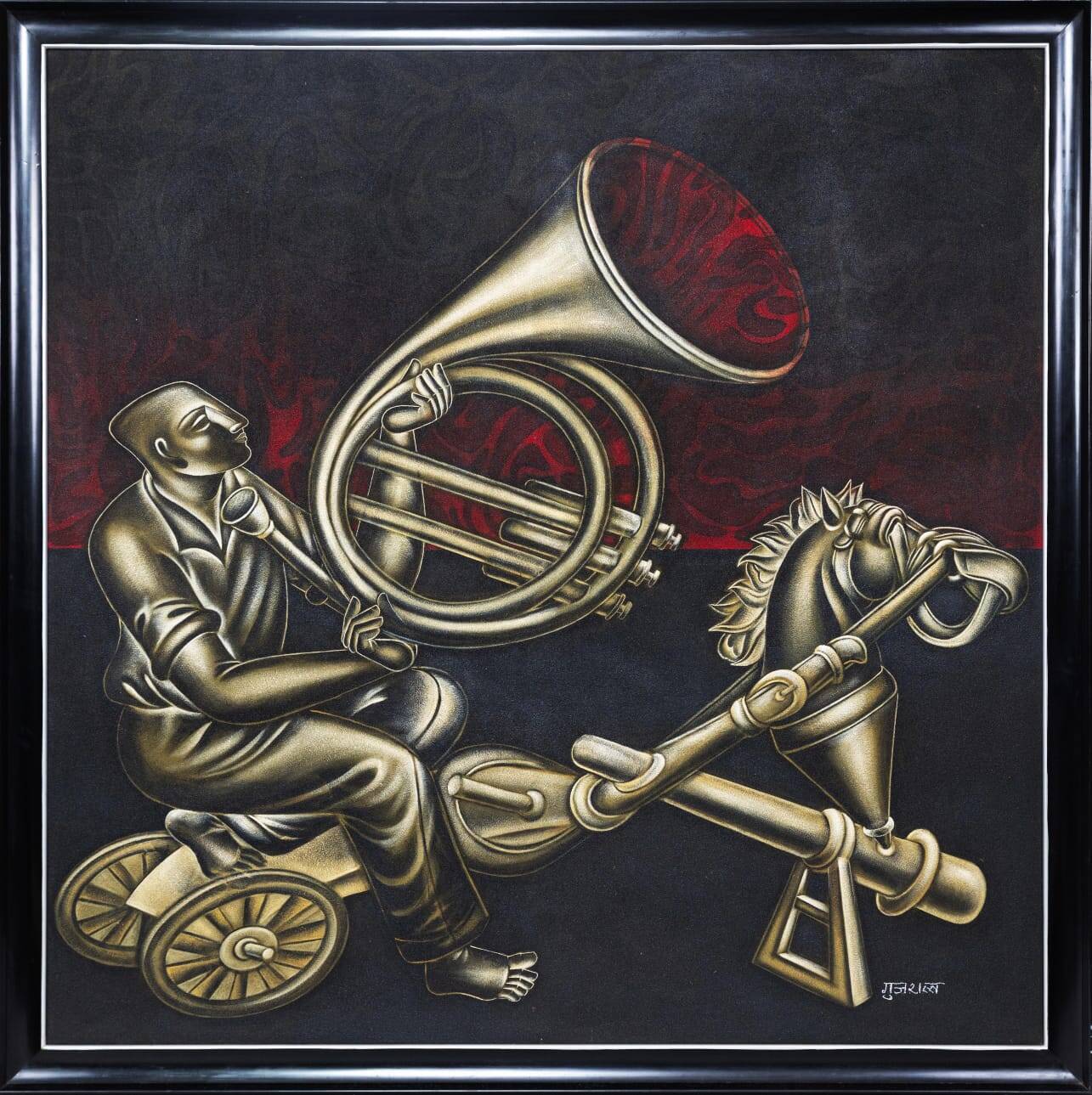 The horses in this suite of works too were elegance personified.Tubular metal forms and detritus from industrial waste all became his language of artistic discourse. Many of these sculptures belong to the Raas series.