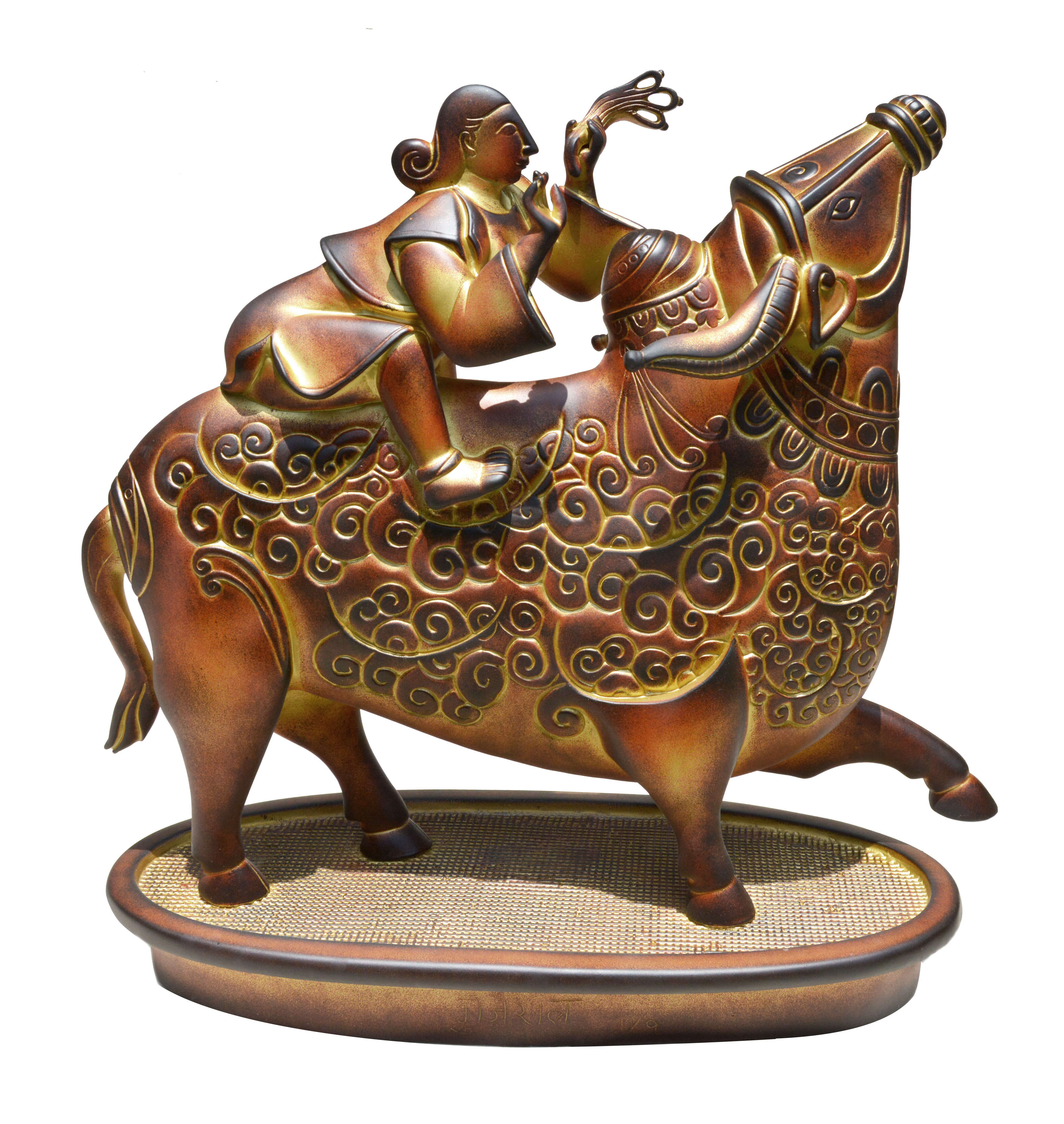 The grace filled cow belonging to the Raas series is one gorgeous image that celebrates not just the contour but also the textural terrain on its body. As Nath ran his fingers over the bovine it was amply clear that the sculptures brought back memories of his own relationship with the Gujral family. It was in 1995 that Nath curated Satish Gujral’s solo show at Art Today in Delhi. One recalls that patinas , pigments and accretions were his language and his ability to mould effects were the key to his dramatic authority that created a litany of iconic imagery in sculptural compositions in design and dedication to nature’s bounty.