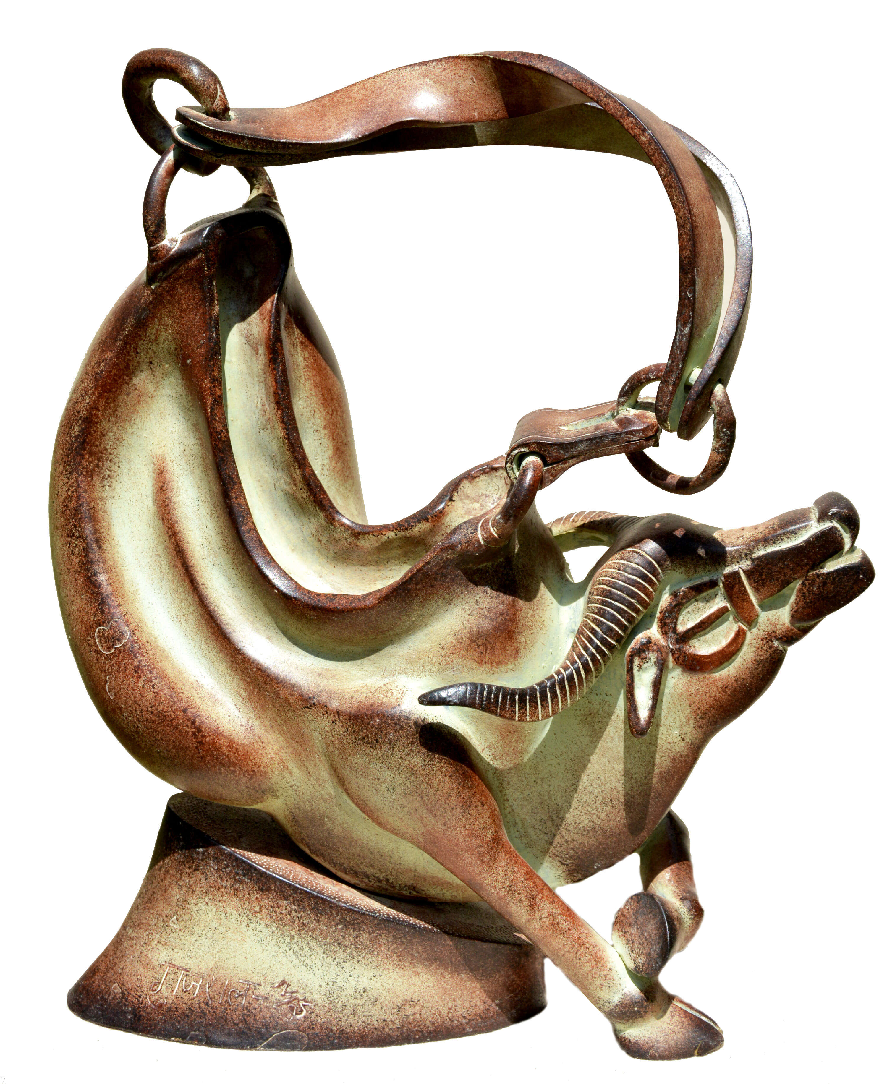 Gujral’s sculpture of a ram is a masterpiece in the making of nature’s garden of sentient creatures.Even in the metallic mooring we sense the expression of quietude as well as the intensity of grace and gravitas within and without. Of course one thinks of great masters and universal icons of the ram one also thinks of the innate love for animals. The beauty of the sculptural works is the synthesis of symbolism and depth of understanding the interdependence of man and nature.