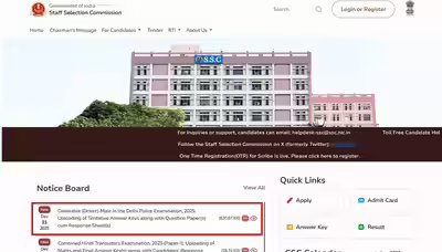 The Staff Selection Commission (SSC) has released the tentative answer key for the Constable (Driver)-Male Delhi Police Examination, 2025. You can now check the answer key along with your question paper and response sheet online at SSC.gov.in.The computer-based examination (CBE) was conducted across the country from December 16 to December 17, 2025. Candidates who appeared in the exam can access their response sheets and question papers for personal use and self-analysis.How to check the tentative answer key and response sheetTo access the answer key and response sheet, you need your registration number and password. The SSC has provided a challenge module, where the question sequence may differ from what you saw during the exam. However, your original answers will be correctly reflected in the system.