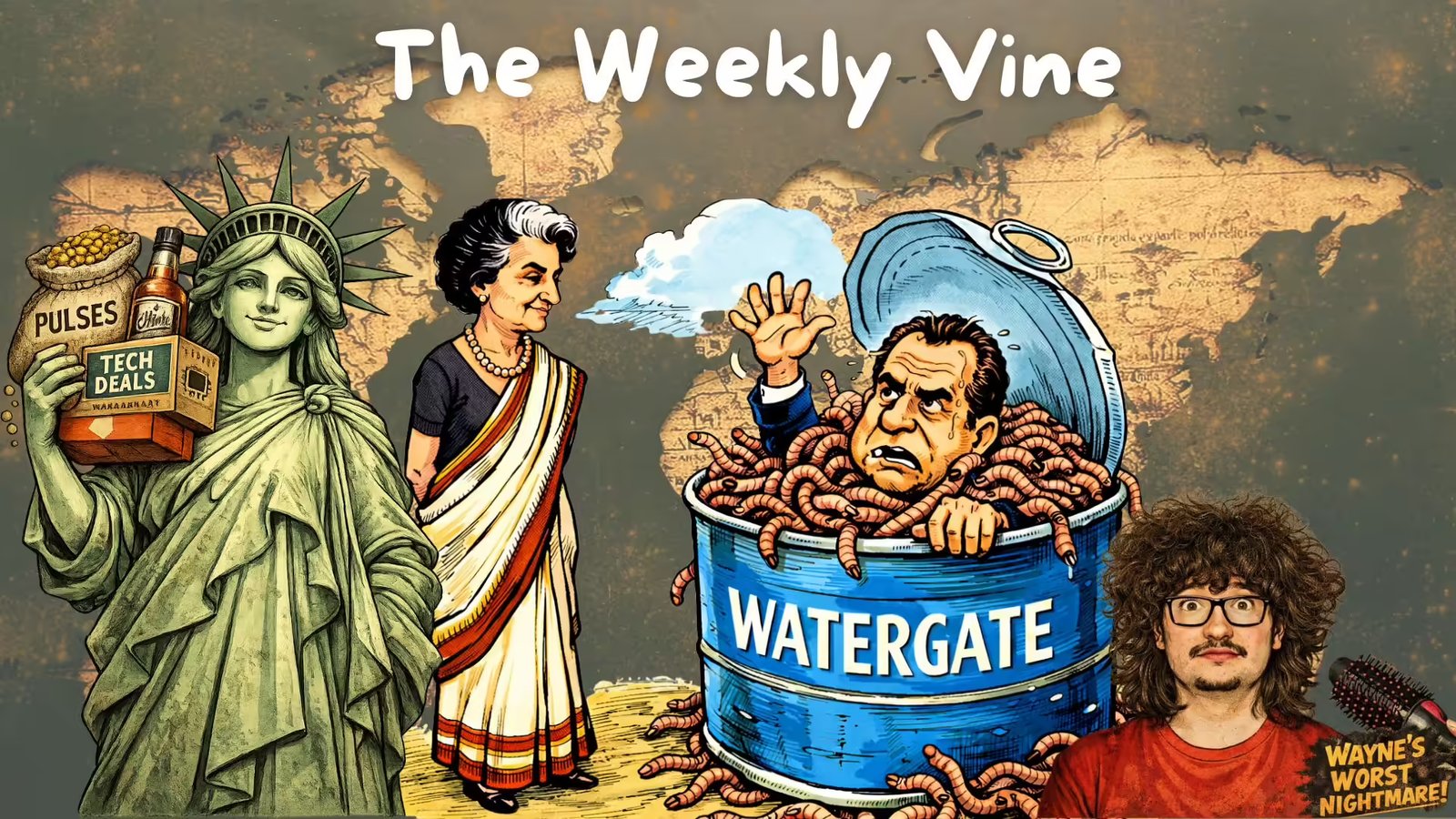 Hello and welcome to the 80th edition of the Weekly Vine. Now 80 is a fine number, an age when one becomes a youth icon in Indian politics. In this week’s edition, we look at some pulsating updates from the India–US trade deal, examine some new worms that have emerged from Watergate, consider the follicular plights of a Manchester United fan, and describe the modern version of feudalism, which now comes with a QR code.