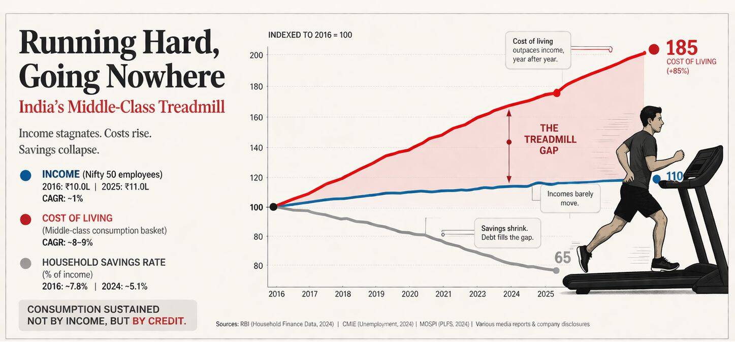 Indian middle class, that broad, aspirational band earning somewhere between Rs 5 lakh and Rs 1 crore a year, now finds itself in a three-sided negotiation where none of the parties appear particularly inclined to concede.
