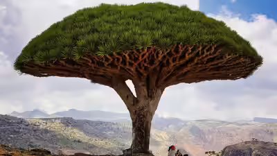 Dracaena trees are found in arid and rocky areas, where wounds caused by wind, animals, or adverse environmental conditions are prevalent. The most well-known variety, Dracaena cinnabari, is found on the island of Socotra, while other varieties are found in Africa and Asia.In this extreme environment, the ability to produce a quick-acting protective resin is essential for the tree’s survival. Dragon’s blood prevents water loss and provides an unfavourable environment for microbes, which is a very smart adaptation.