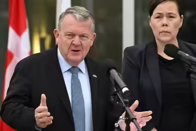 Denmark’s foreign minister Lars Løkke Rasmussen and Greenland’s foreign minister Vivian Motzfeldt (AP)