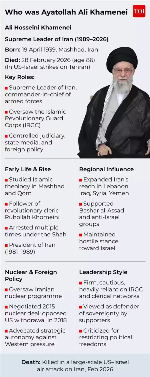 The crisis has already spread beyond Iran and Israel. Protests have broken out in places such as Karachi and Kashmir, while embassies across the region have issued security alerts.US embassies in Bahrain, Israel, Iraq, Jordan, Oman and Pakistan have advised staff and citizens to shelter in place. Several airports across the Middle East remain closed, stranding thousands of travellers.With both sides exchanging threats and missiles, and diplomacy appearing distant, the killing of Khamenei has pushed the region into one of its most dangerous moments in years.