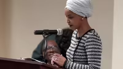 Watch: US Democratic representative Ilhan Omar sprayed with unknown substance during speech in Minneapolis