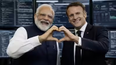 French President Emmanuel Macron on Wednesday shared an AI image with Prime Minister Narendra Modi, as he’s on three-day tour to India. He’s also set to attend the AI impact summit in New Delhi. The image shows the two nations’ leaders making a heart by joining their hands and smiling, with a text on it saying, “Yes, This is AI”. In the image, two white mugs with the flags of India and France can also be seen. Macron shared this image with the caption, “When friends connect, innovation follows. Ready for The AI Impact Summit!”The summit builds on earlier global initiatives, including the 2025 AI Action Summit in Paris, co-chaired by PM Modi and Macron, brings together world leaders and tech executives to discuss the future of artificial intelligence.Earlier in the day, speaking at an event at All India Institute of Medical Sciences, Emmanuel Macron said India and France are aligned on the future of artificial intelligence, stressing the need to avoid overreliance on dominant global models. “I think it is important that this innovation becomes a very important part of our countries. I believe we share the same objective in India and France, and in Europe — that we do not want to be totally dependent on the US and Chinese models. We believe we need our own balanced model, and we want to be part of the solution. We want our players to be part of the solution as well,” he said.Macron described the ongoing India AI Impact Summit 2026 in Delhi as crucial for advancing responsible and development-focused AI. Referring to earlier global discussions, he said the dialogue must continue to ensure innovation benefits societies broadly.India is hosting the summit from February 16 to 20, structured around three pillars — People, Planet, and Progress. The Prime Minister inaugurated the India AI Impact Expo 2026 at Bharat Mandapam earlier this week.Billed as the first major global AI gathering in the Global South, the summit has drawn over 20 Heads of State, dozens of ministers, and hundreds of AI leaders. Bringing together policymakers, industry, innovators, and academia, the event aims to translate global AI discussions into practical development outcomes under the IndiaAI Mission and the Digital India initiative.The Prime Minister is set to deliver the inaugural address on February 19, outlining India’s vision for inclusive, trusted, and development-oriented artificial intelligence.
