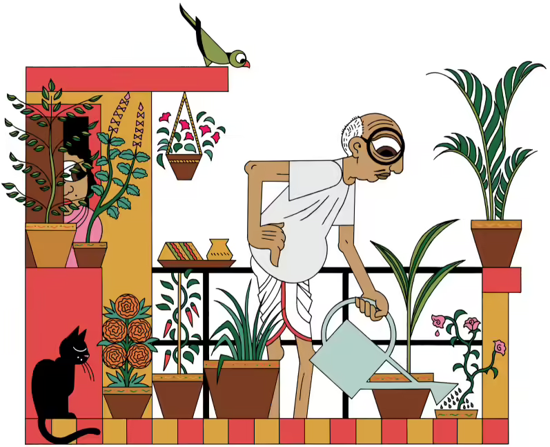 My wife is too kind to ever say this, but I suspect she will strongly prefer me not to retire any time soon, especially since she likes working from home. But for me, I suspect there is a deeper anxiety: I first met my grandfather when I was 5 and he was 65, and facing impending retirement. He had been a prominent educator in his life, and if I understand right, a bit of a terror, and suddenly he had nothing to keep him busy. He tried his hand at gardening. Our terrace filled up with red, baked-earth pots, and every couple of weeks, we would go shopping for various new cuttings to plant. And a heavy bag of whatever remains after mustard oil gets extracted — khol in Bangla — which would then ferment and stink up the entire terrace before it was doled out into the pots to feed the growing saplings. He had his various digging implements, and his watering can and, as dusk started to set it, he would be on the terrace, poking here and tamping there, sprinkling water over the dusty leaves.